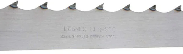 Kmenový pilový pás Legnex CLASSIC je vhodný pro řezání všech druhů dřeva. CLASSIC poskytuje vysokou efektivitu při řezání měkkého, tvrdého a zmrzlého dřeva, díky vysoce kvalitní německé uhlíkové oceli.