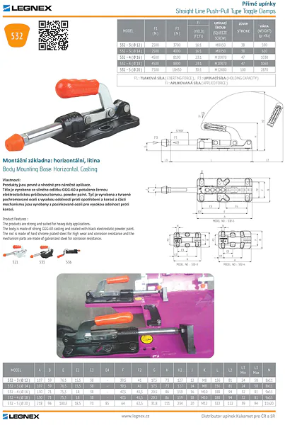 Maximální upínací síla 8800 N. Aretace v obou koncových polohách (použití na tah a tlak). Široké spektrum použití.