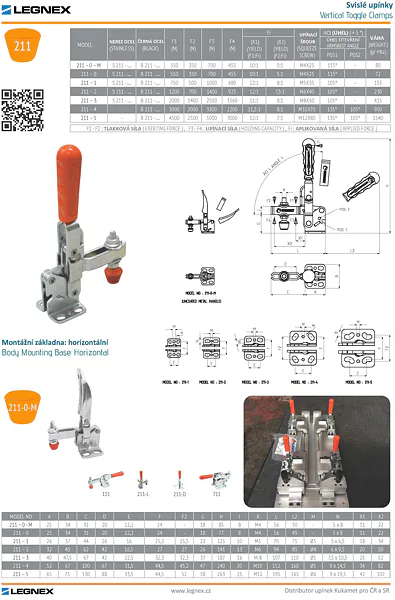 Maximální upínací síla 2500 N. Upínka se svislou konstrukcí pro lehké až středně těžké použití je vybavena bezpečnostní pojistkou. Široké spektrum použití.